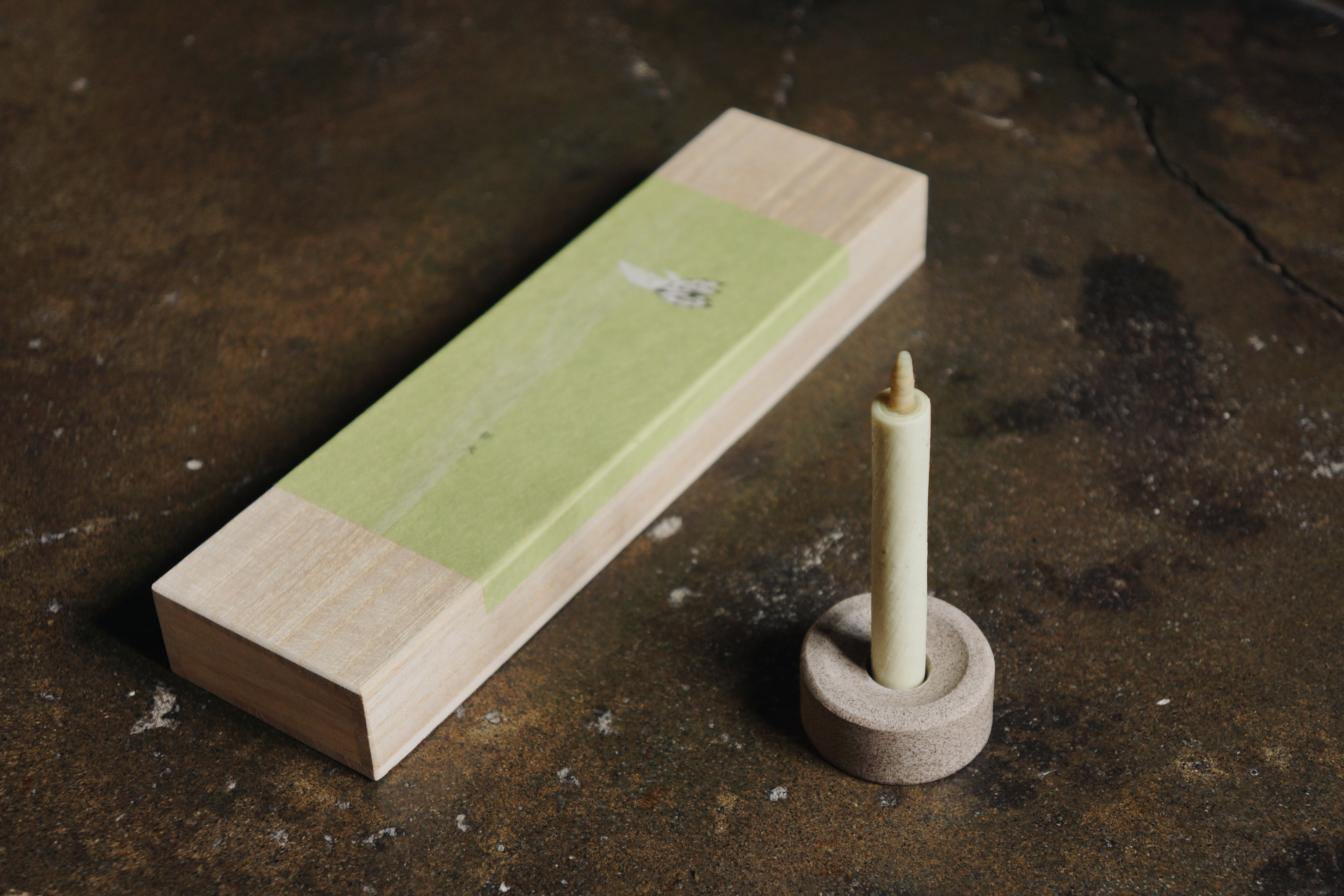 4 sticks in box with matches and candle stand
